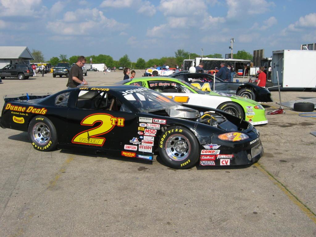 late model in pits at lake geneva