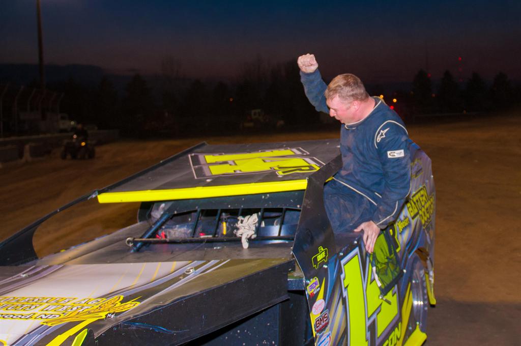IMCA Stock car winner Joe Flory on night 5 of the Kupper Dakota Classic Mod Tour. photo credit LPT Images