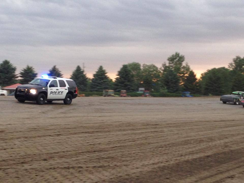 Sponsor BNSF Railway has the local BNSF police officer come out to do pace vehicle duty. Race cars chasing cop cars, what next?! Dogs and Cats living together in perfect harmony??