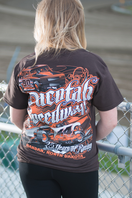 We sell these shirts as a fundraiser for the Bismarck Cancer Center Foundation. This also counts as your ticket on August 22nd, or $5 off pit fees. Photo Credit LPT Images, Model Robin