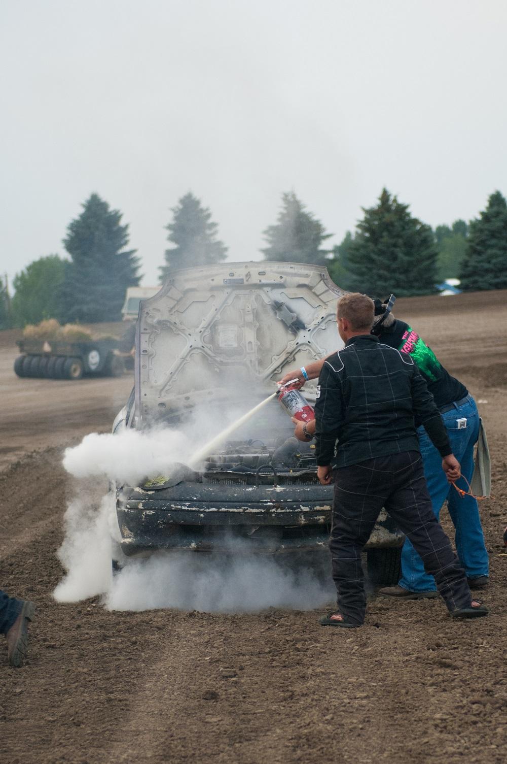 IMCA Sport Compact comes in for the trophy presentation and ends up on fire! Guess it was a smokin' race! Photo Credit LPT Images