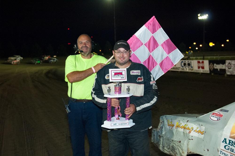 Feature Winner Josh Roehrich picking up another IMCA Sport Compact W. Photo Credit: LPT Images