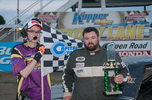Jeff Taylor came to Dacotah Speedway for a pre-Kupper Dakota Classic Mod Tour test drive. Shawn Strand gave Taylor his backup car. In true Jeff Taylor style he wheeled the 99T to Victory Lane! photo courtesy of LPT Images
