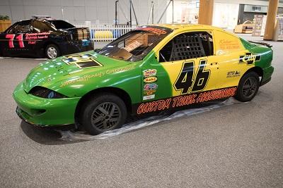 IMCA Sport Compact Driver Josh Roehrich on Hirsch Floral and Gifts and Starion Financial night. Photo Credit LPT Images