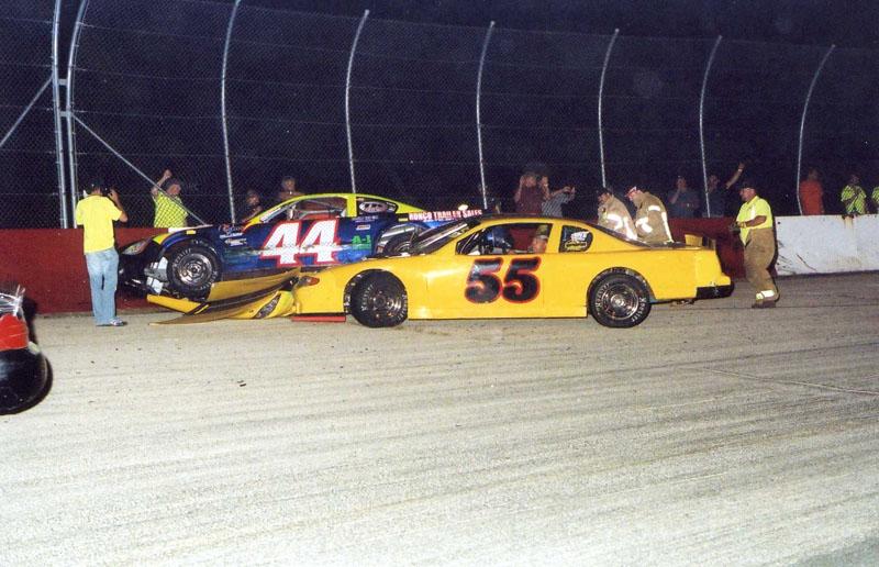 Chuck Yuris(#44) and Mike Yuris(#55) wrecked in turn one