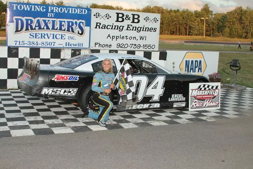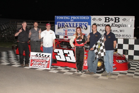 Reagan May, First SLM Feature Win, Super Late MOdel, 5/31/14. Courtesy of Tom Loos Photography.