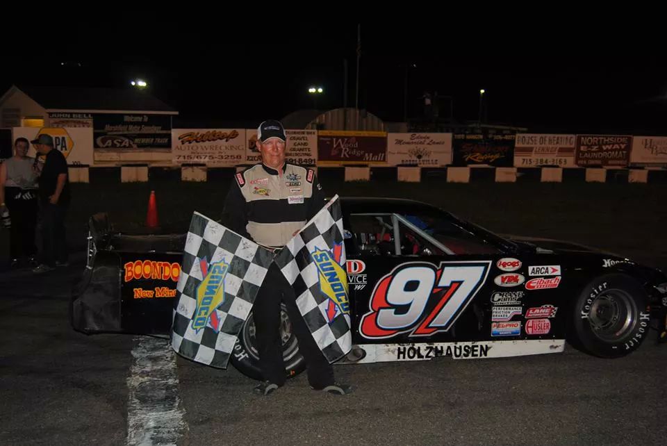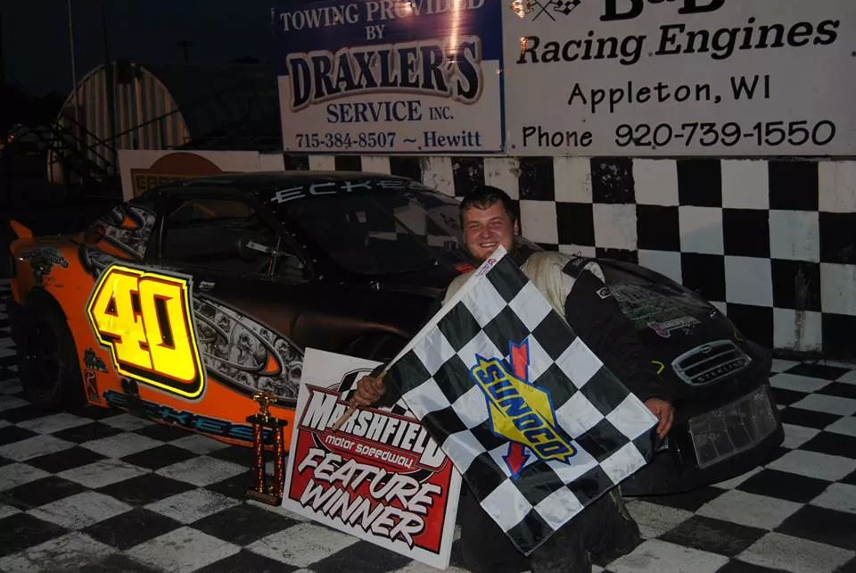 Travis Volm, Feature win, Pure Stock, 5/24/14. Courtesy of Tom Loos Photography.