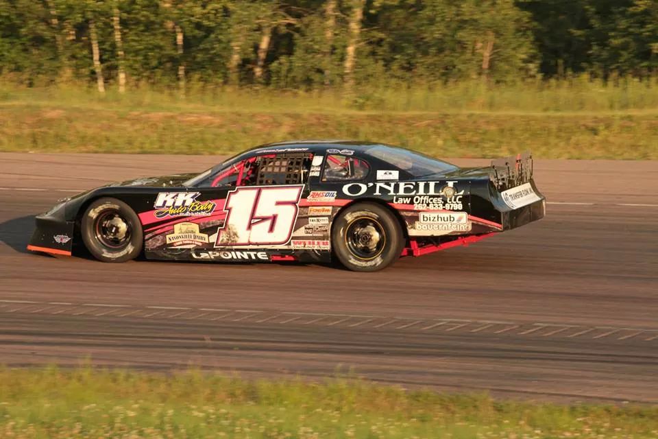 Jordan Thiel, Heat Win, Super Late Model, 5/31/14. Courtesy of Tom Loos Photography.