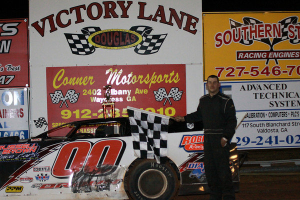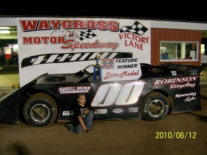 My son, Austin with my car in Victory Lane at Waycross Motor Speedway last year