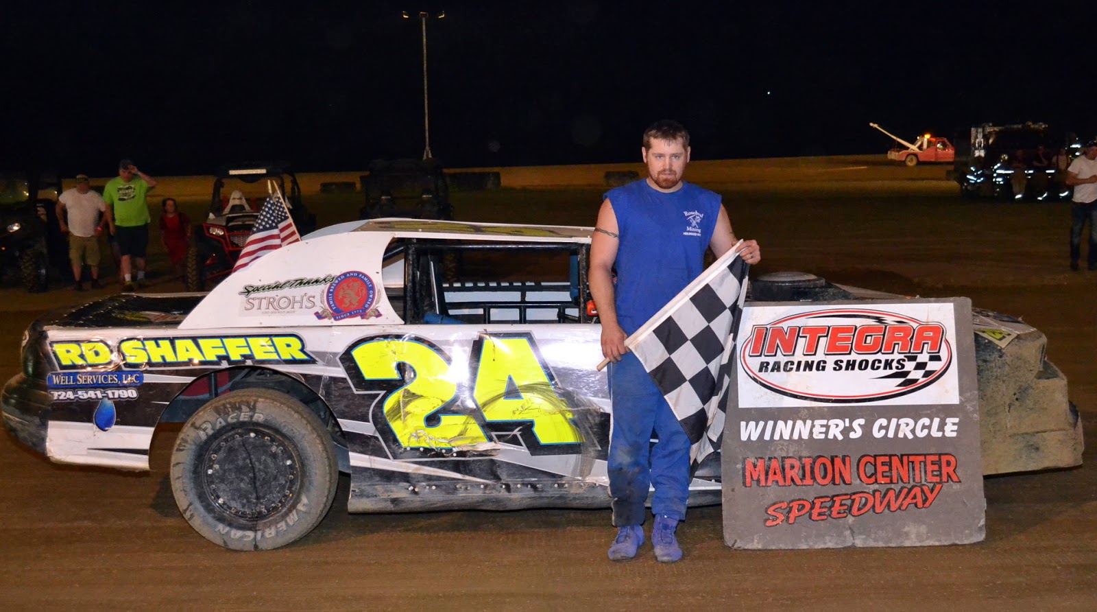 Marion Center Speedway was the hot spot for first time visitor to the track, Bobby Rohrer from Waterford. Rohrer came in to take his chances at walking away with $1500 in his pocket for winning the 30 lap special feature for the Lias Tire Super Late Models; and he accomplished just that. Rohrer started on the outside pole position and took the lead when the green flag flew to start the race over Dan Swartzlander from Sarver who had the pole position. Once in the lead Rohrer never let anyone else lead the race to make the trip to the Integra Racing Shocks Winner’s Circle to collect his trophy and top prize money of $1500 for winning the race. Rich Gardner also from Waterford, started right behind Rohrer and followed him across the finish line for second place. Then another newcomer, Rick Singleton of Huntington, took third place at the checkers by maintaining his third place starting position with Mike Blose of New Bethlehem right behind him in fourth place. Dane Laraway of Harrison City was fifth and Top point man going into the Saturday night race, Billy Eash was sixth. Here’s the results of the Marion Center Speedway Independence Day Blowout Finale with the Lias Tire Super Late Models: 1) Bobby Rohrer, 2) Rich Gardner, 3) Rick Singleton, 4) Mike Blose, 5) Dane Laraway, 6) Billy Eash, 7) Doug Glessner, 8) Gary Lyle, 9) Joe Petyak, 10) Rod Phillips, 11) John Myers, 12) Dave Blazavich, 13) Doug Eck, 14) Andrew Gordon, 15) Levi Sikora, 16) Greg Beach, 17) Bob Sheesley, 18) Ken Schaltenbrand, 19) Dan Swartzlander, 20) John Wayne Weaver, 21)Dwayne Tanneyhill, 22) Shawn Claar, 23) Joe Campbell, 24) Bob Dorman, 25) John Britsky. Tom Shaffer wasn’t able to compete in the feature. The Lias Tire Super Late Model heat race winners were Mike Blose, Bobby Rohrer and Rich Gardner.