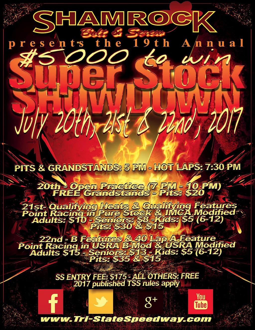 19th Annual Super Stock Showdown presented by Shamrock Bolt & Screw Company paying $5,000 to win!