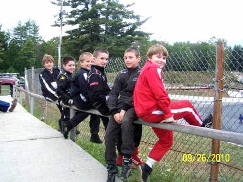 Matt sitting with the Tiger A drivers before a race at Twin State Speedway
