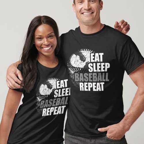 Eat sleep baseball repeat matching print on black tee