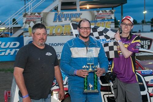 Feature Winner Josh Roehrich picking up another IMCA Sport Compact W. Photo Credit: LPT Images