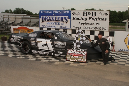 Reagan May, First SLM Feature Win, Super Late MOdel, 5/31/14. Courtesy of Tom Loos Photography.