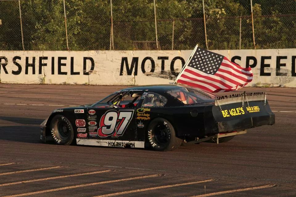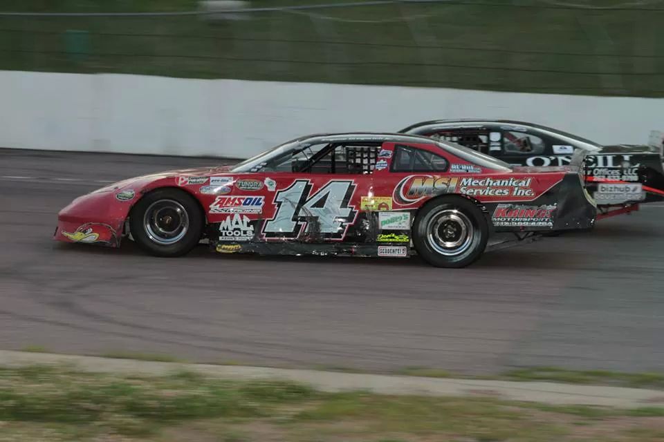 Travis Volm, Feature win, Pure Stock, 5/24/14. Courtesy of Tom Loos Photography.