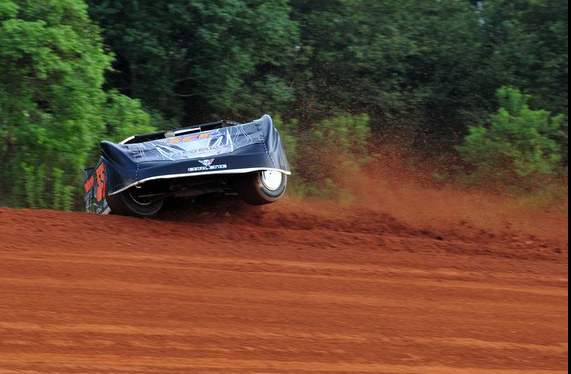 Bo Odom tries out the REALLY high side during Super Late Model hot Laps