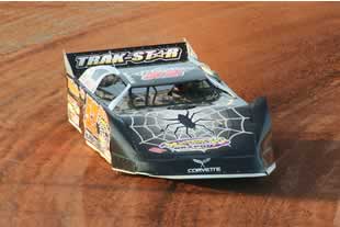 Bo Odom tries out the REALLY high side during Super Late Model hot Laps