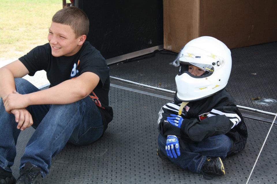 Ty with 5yr old brother TJ waiting to race his champ kart