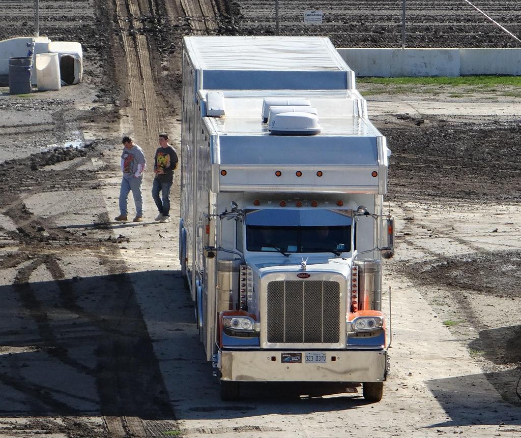 one of the race teams coming into the pits at eldora , so many awesome rigs !
