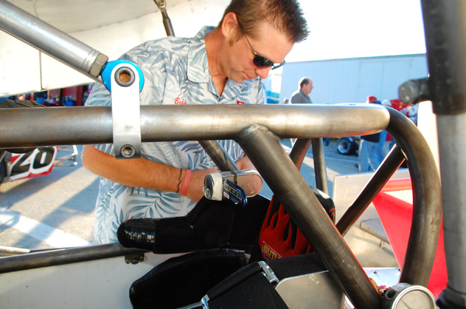 Installing a camera on "GQ" Bobby Haynes Jr.'s car for NH Classic 100 @Lee USA Speedway 2010. Photo by Jim Feeney