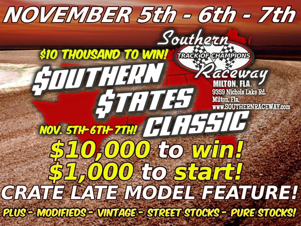 $10,000 to Win $1,000 to start at Southern Raceways Southern States Classic