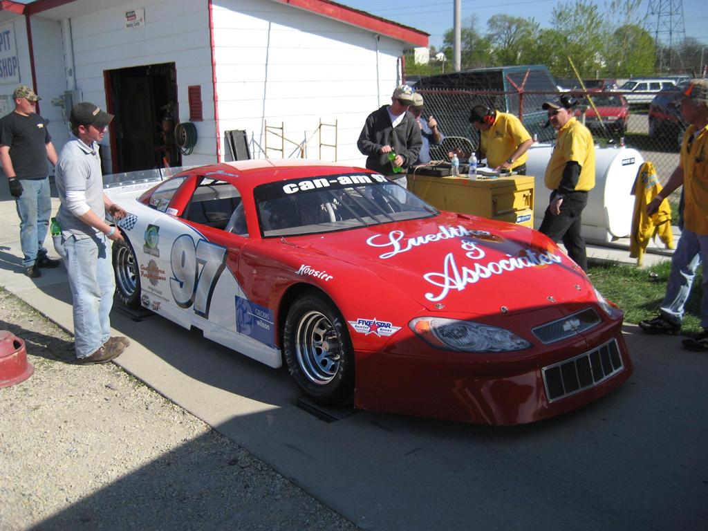 late model in pits at lake geneva