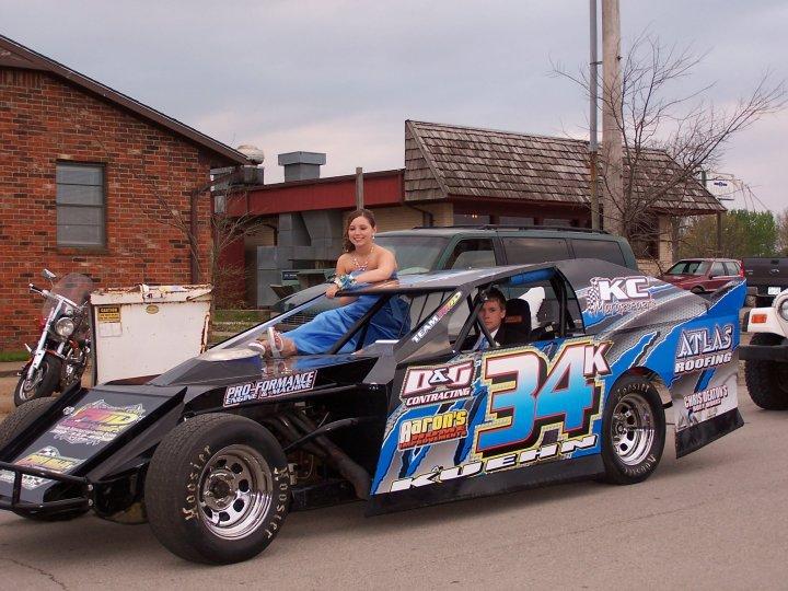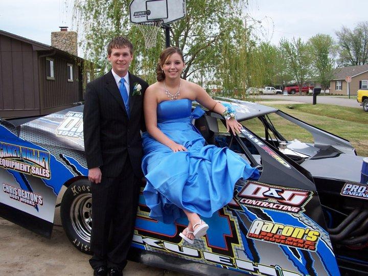 me and my gf, at prom.yes we took the racecar!!