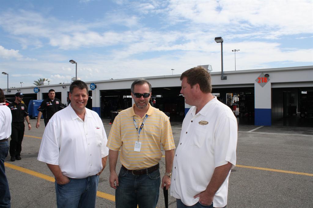 William Bray (center) with team owners Todd Braun and Doug Stringer at Daytona, 2009.