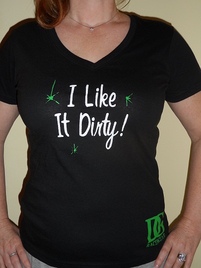 "I Like It Dirty" Ladies T-shirt. Order on our website at www.dirtygirlracewear.com