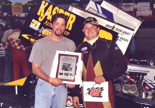 circa 2003 ISMA Sandusky Speedway presenting Jamie Letcher with Dion Parish Memorial Perseverance Award photo by Richard Lesiecki
